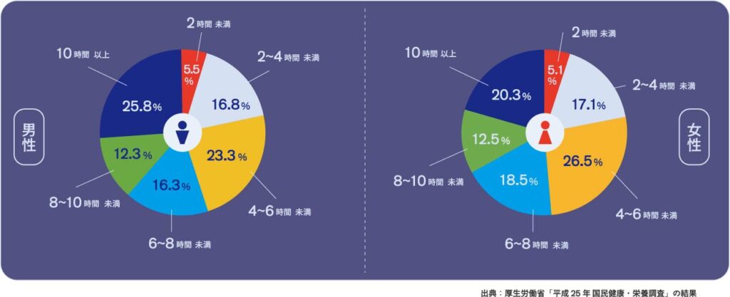 中でも、日本人の座位時間※は長く、世界20ヵ国の中で最長であることがわかりました。一日24時間の中で、あなたは座って過ごしている時間はどのくらいですか?
